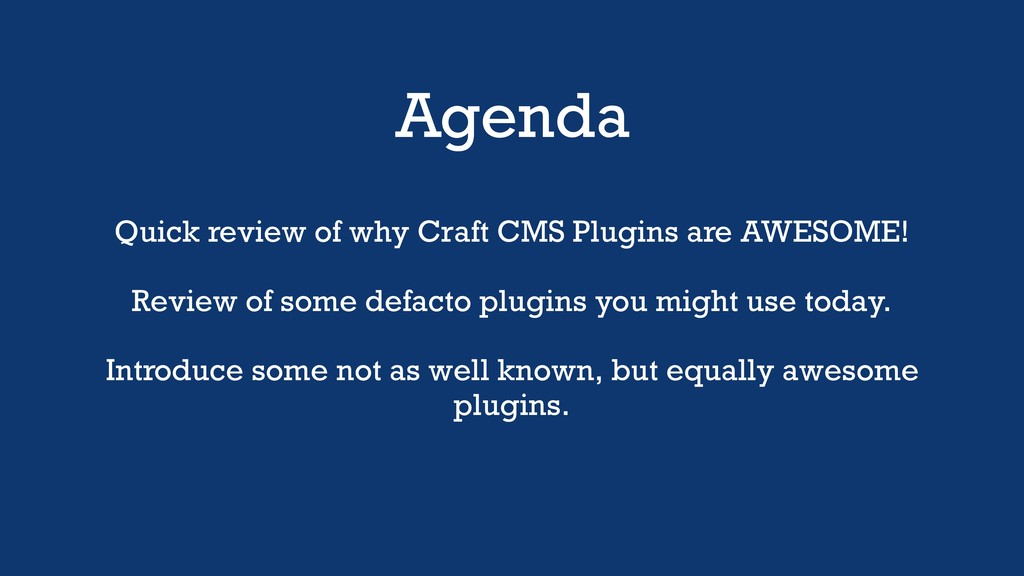 Agenda Quick review of why Craft CMS Plugins are AWESOME!