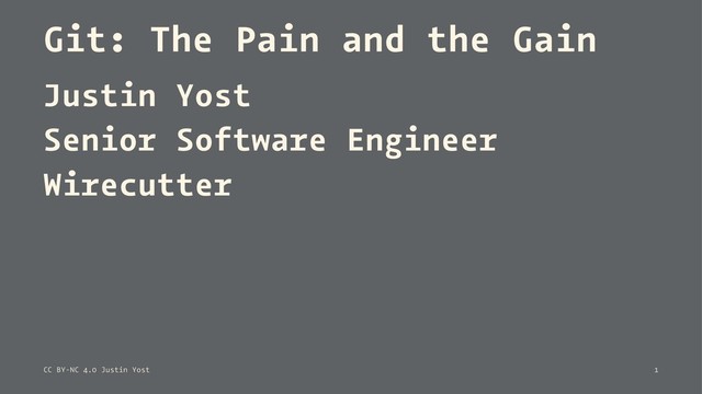 not always easy — Are you just learning Git and coming from SVN or CVS? — Do you not do code reviews? — Are you working alone? CC BY-NC 4.0 Justin Yost 8