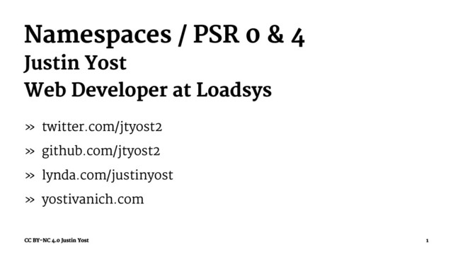 real problem » Namespaces are actually relatively easy » PSR-4 doesn't require a lot of work » Implement composer and you solve several problems CC BY-NC 4.0 Justin Yost 30