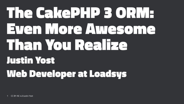 than a findWhereBlah or get, gets a custom finder. • Collections are beyond useful, easily one of the most powerful pieces of CakePHP 3 in general • Iterators in general are the foundation of writing good pipelines of work needing to be done • Learn Collections • Learn Iterators 29 CC BY-NC 4.0 Justin Yost
