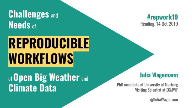 The presentation will go through each step of some example workflows for open meteorological and climate data and will discuss reproducibility and ‘accessibility’ challenges and future needs that will be required in order to make open meteorological and climate data fully accessible and reproducible.
