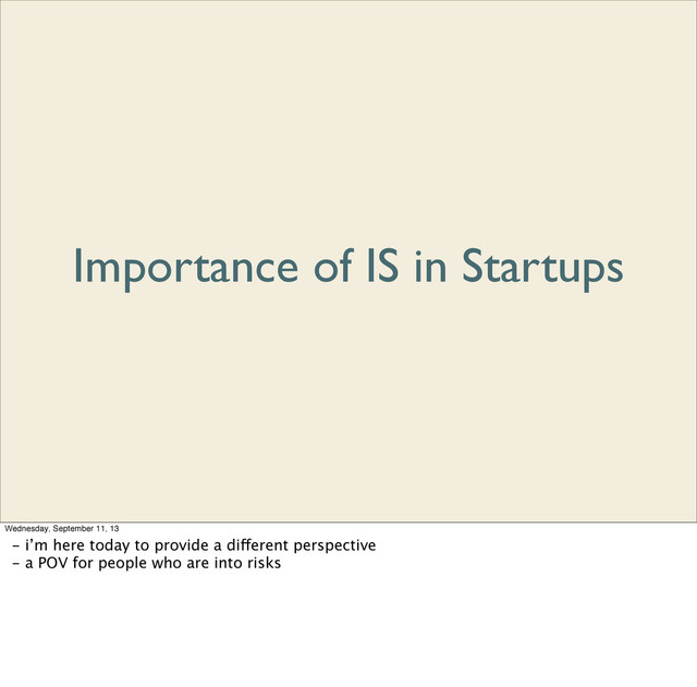 1. Importance of IS in Startups Wednesday, September 11, 13 -