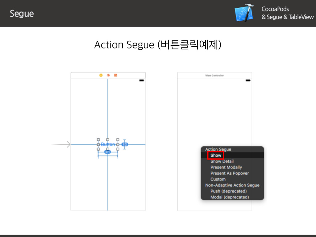 CocoaPods & Segue & TableView Segue ജߑधٜ4FHVFܳਊೠߑߨ݅ࢸݺೞѷणפ "DUJPO4FHVF 6*7JFX"DUJPO ߮