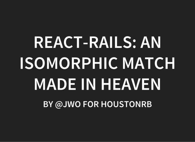 Let's look at how we can use the Rails asset pipeline, JSON APIs, pre-rendering, and React to build isomorphic rails apps that rule.