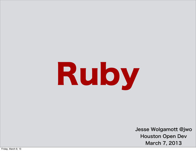 => "Peter" >> person.whats_my_name NameError: undefined local variable or method `name' for #<Person:0x007feb9613b8c8> ! from (irb):27:in `whats_my_name' ! ... Friday, March 8, 13