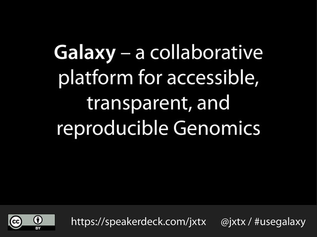 A remix of my early 2015 talks with a focus on how Galaxy supports collaboration (within and between Galaxy instances), and how it could be used to support a community of researchers collaborating on a set of genome projects – while sharing tools and workflows reproducibly.