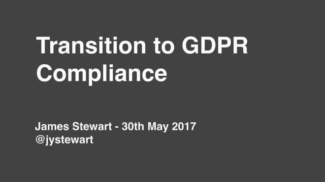 Blog post version at https://jystewart.net/2017/05/30/transition-beyond-gdpr-compliance/