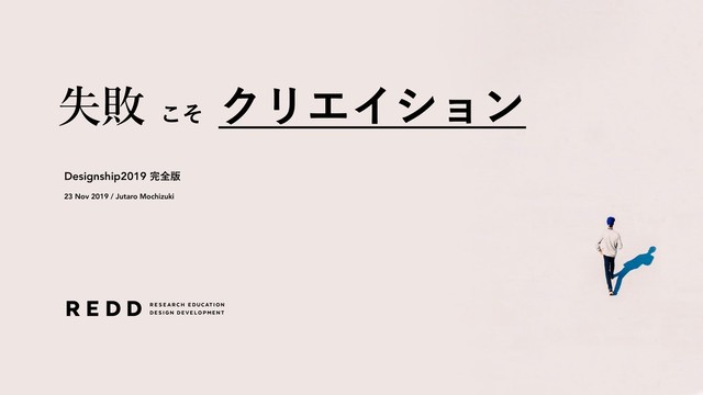 Designship2019のキーノートで披露した「失敗こそクリエイション」のドキュメントです。失敗とは挑戦であり、学びであり、ギフトであり、人生の新しい豊かさをもたらします。それこそがクリエイションであり、デザイナーが愛すべき大切な事柄です。