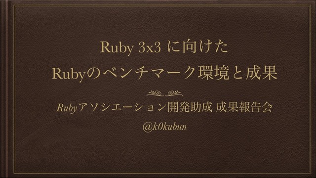 Ruby 3x3 ʹ͚ͨ RubyͷϕϯνϚʔΫڥͱՌ RubyΞιγΤʔγϣϯ։ൃॿ Ռใࠂձ @k0kubun