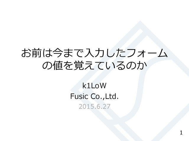 お前は今まで⼊入⼒力力したフォーム の値を覚えているのか k1LoW Fusic Co.,Ltd. 2015.6.27 1