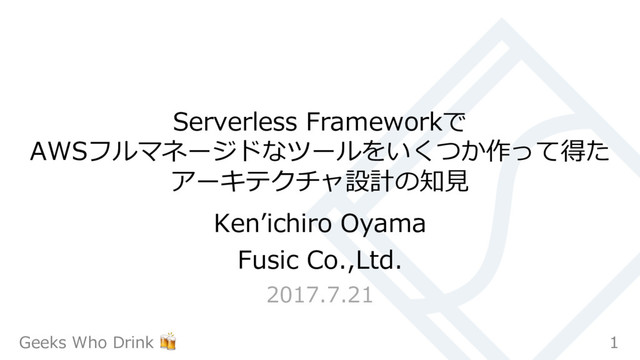 Serverless Frameworkで AWSフルマネージドなツールをいくつか作って得た アーキテクチャ設計の知⾒ Kenʼichiro Oyama Fusic Co.,Ltd. 2017.7.21 1