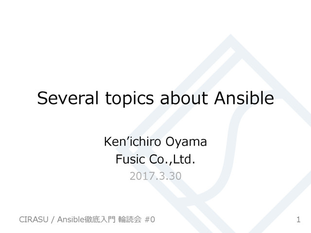 Several topics about Ansible Kenʼichiro Oyama Fusic Co.,Ltd. 2017.3.30 1