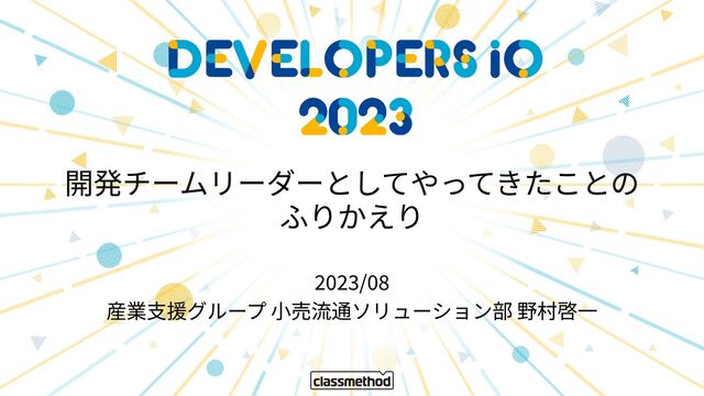 DevelopersIO 2023のビデオセッションにて「開発チームリーダーとしてやってきたことのふりかえり」というテーマで発表をしました。