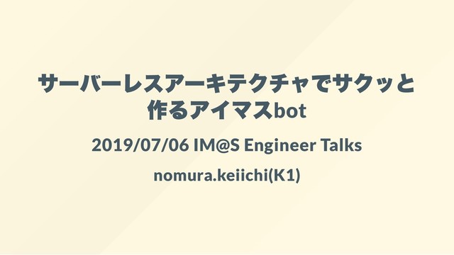 サーバーレスアーキテクチャでサクッと 作るアイマスbot 2019/07/06 IM@S Engineer Talks nomura.keiichi(K1)