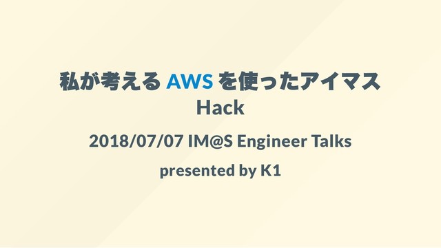 私が考える AWS を使ったアイマス Hack 2018/07/07 IM@S Engineer Talks presented by