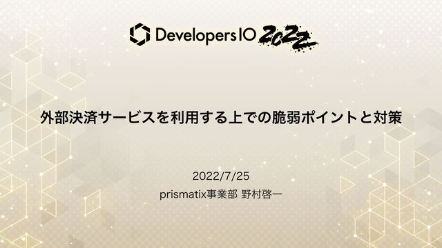 クラスメソッドのオンライン型イベント DevelopersIO 2022 https://classmethod.jp/m/developers-io/ 技術セッションとして、「外部決済サービスを利用する上での脆弱ポイントと対策」というテーマで動画を公開しました。