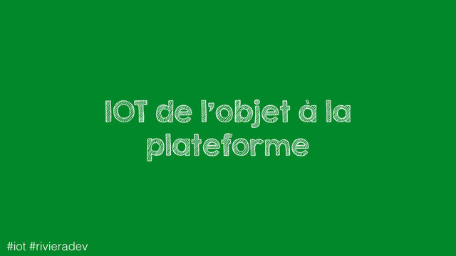 C'est bien beau tous ces objets connectés, mais qu'est-ce que réellement un objet connecté?, comment ça communique? (et avec quoi?) ... Et au fait ça se gère comment? (parce que l'on peut se retrouver avec beaucoup d'objet connectés à gérer ... par exemple les tireuses à bières des pubs londoniens ... si elles étaient connectées ... hein?) On parle d'Internet of Things, mais j'appellerais ça aussi ""Interactions of Things"" Mon objectif est de vous montrer à travers quelques démos avec CylonJS, Mosca, Epoch , ..., comment on peut construire simplement une plateforme IOT, de l'objet connecté à sa gestion et aussi vous présenter les grands principes de l'IOT. Pour imager les démos je me ferais ""accompagner"" d'une sphero (et peut-être d'autres jouets, tout dépend du facteur)