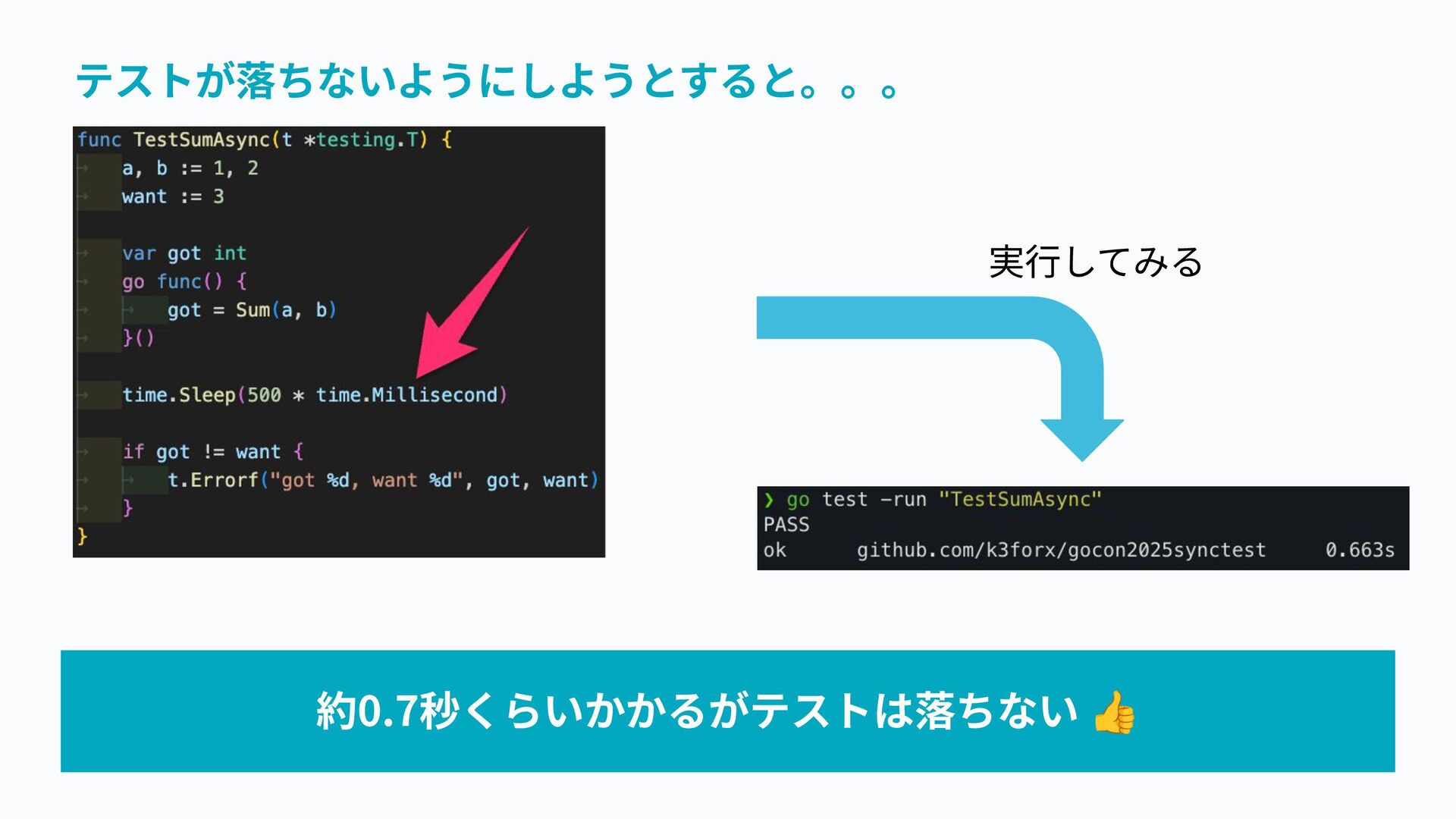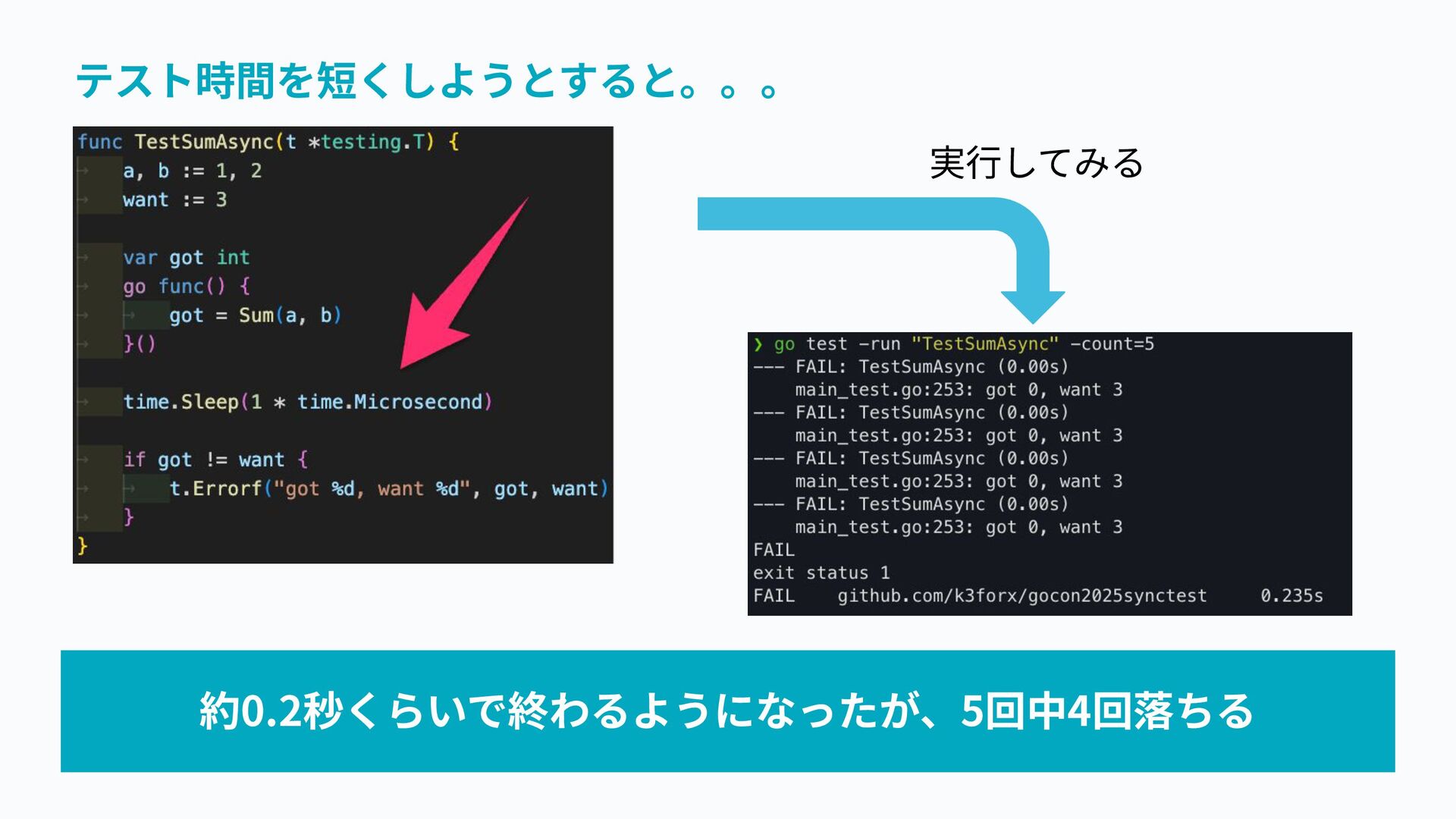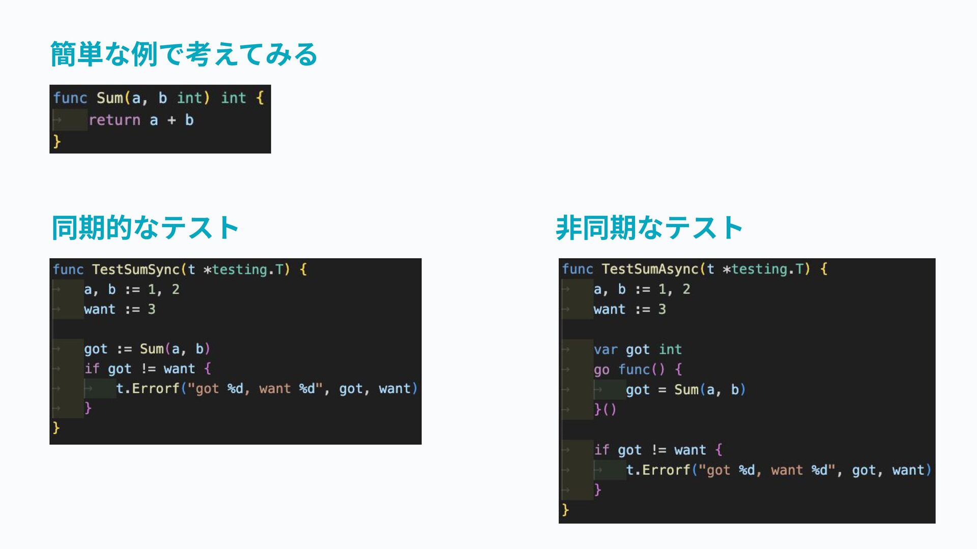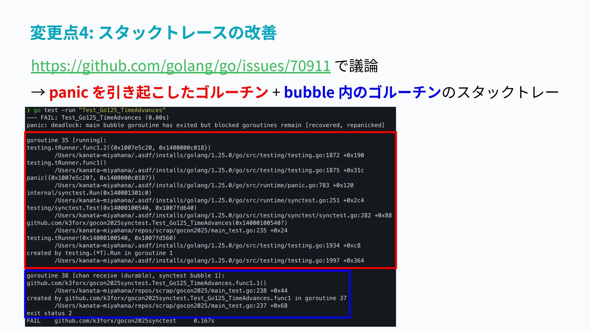 実験コードを交えての解説 a. GoDoc を読む b. Run / Test がそれぞれどのような役割があるのか 4. Go クイズ! 5. 弊社での実際の活⽤例 6. Go 1.24からの変更点 7. 今後の展望 8. API の内部実装(時間があれば) testing/synctest を完全理解する!