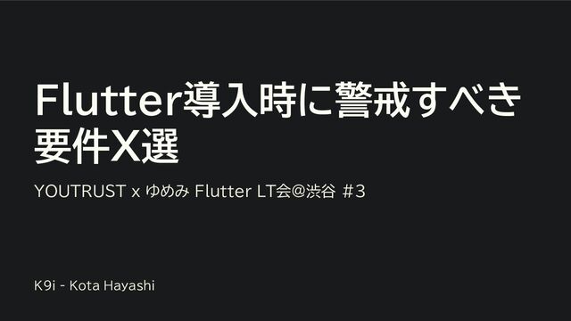 Flutter導入時に警戒すべき 要件X選 YOUTRUST x ゆめみ Flutter LT会@渋谷 #3 K9i -