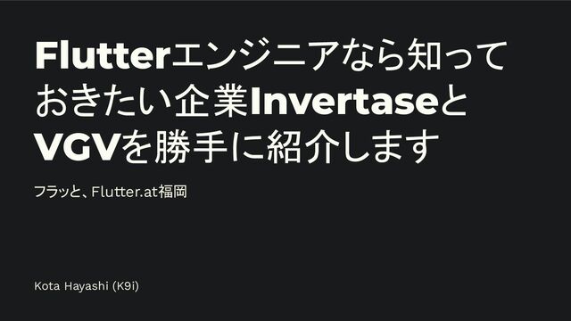 Flutterエンジニアなら知って おきたい企業Invertaseと VGVを勝手に紹介します フラッと、Flutter.at福岡 Kota Hayashi (K9i)