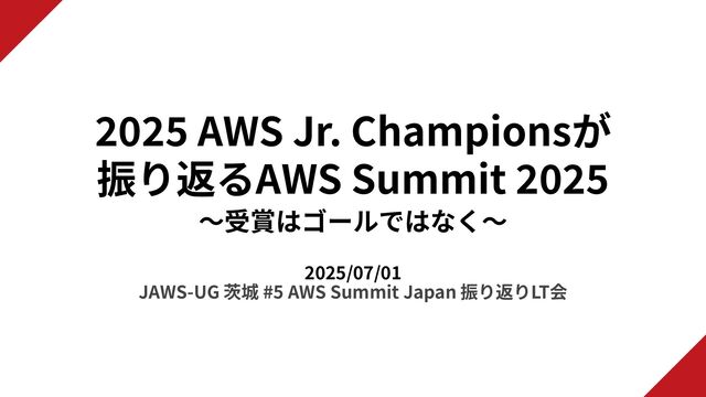 AWS Jr. Championsが 振り返るAWS Summit 2025 〜受賞はゴールではなく〜 2025/07/01 JAWS-UG 茨城 #5 AWS Summit Japan 振り返りLT会
