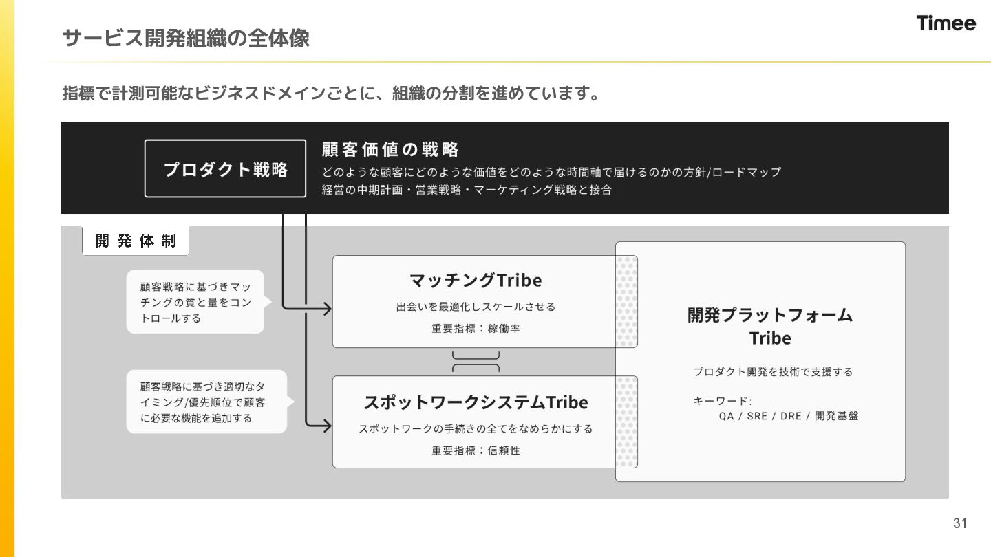 サービス開発組織の全体像 指標で計測可能なビジネスドメインごとに、組織の分割を進めています。 31