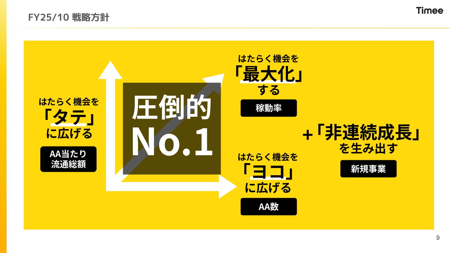 9 FY25/10 戦略方針 + 「⾮連続成⻑」 を⽣み出す 「タテ」 に広げる はたらく機会を 「ヨコ」