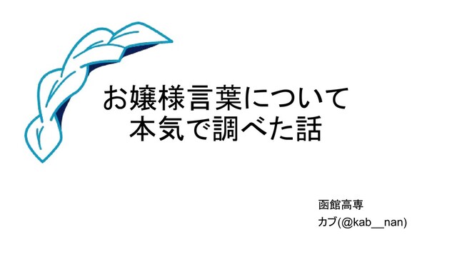自己紹介 •カブ(@kab__nan) •イベント好きなオタク •函館高専5年(未来大生ではない) •インフル病み上がり •卒研つらい!!!!!!