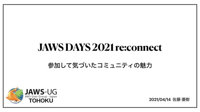 2021/04/14 ࠤ౻ ༏थ JAWS DAYS 2021 re:connect ࢀՃͯ͠ؾ͍ͮͨίϛϡχςΟͷັྗ