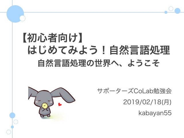 ʲॳ৺ऀ͚ʳ ɹ͡ΊͯΈΑ͏ʂࣗવݴޠॲཧ ɹɹࣗવݴޠॲཧͷੈքɺΑ͏ͦ͜ αϙʔλʔζ$P-BCษڧձ ݄ LBCBZBO