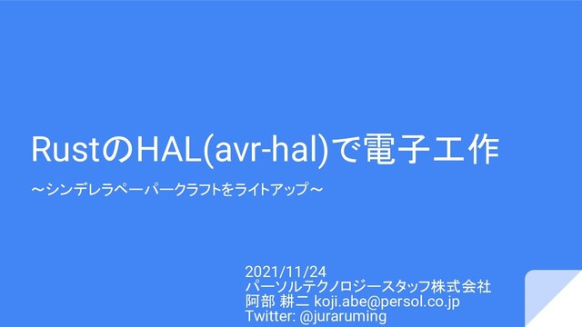 RustのHAL(avr-hal)で電子工作 ~シンデレラペーパークラフトをライトアップ~ 2021/11/24 パーソルテクノロジースタッフ株式会社 阿部 耕二