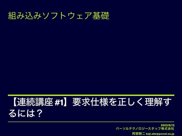 ʲ࿈ଓߨ࠲ #1ʳཁٻ༷Λਖ਼͘͠ཧղ͢ Δʹʁ 2022/5/17 ύʔιϧςΫϊϩδʔελοϑגࣜձࣾ Ѩ෦ߞೋ