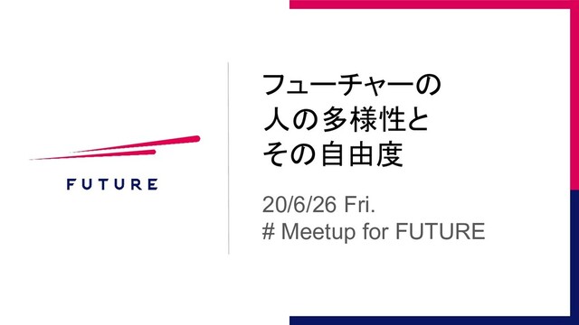 フューチャーの 人の多様性と その自由度 20/6/26 Fri. # Meetup for FUTURE