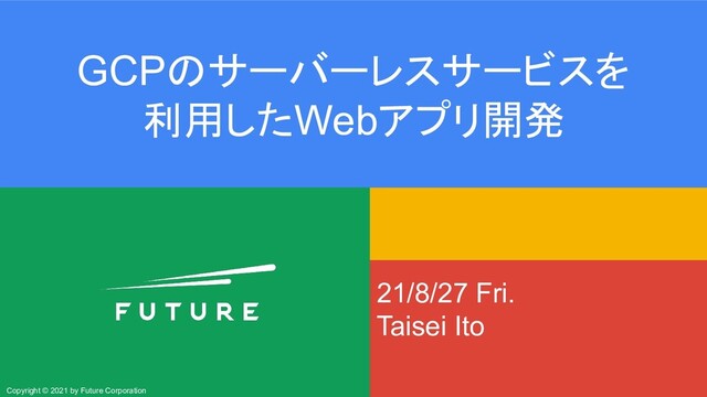 21/8/27 Fri. Taisei Ito GCPのサーバーレスサービスを 利用したWebアプリ開発 Copyright © 2021 by