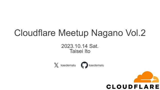 Cloudflare Meetup Nagano Vol.2 2023.10.14 Sat. Taisei Ito kaedemalu 𝕏
