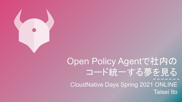 Open Policy Agentで社内の コード統一する夢を見る CloudNative Days Spring 2021 ONLINE Taisei