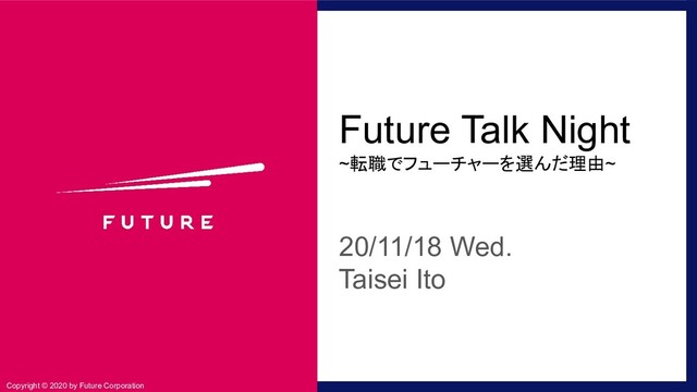 Future Talk Night ~転職でフューチャーを選んだ理由~ 20/11/18 Wed. Taisei Ito Copyright ©