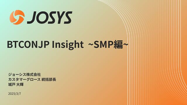350+ Employees 319億円 Funding (179 equity + 140 debt) 700+ Customers Investors Global Locations Tokyo, Japan Bangalore, India California, USA Singapore Vietnam ジョーシス株式会社 • 設⽴:2022年2⽉1⽇ • 所在地:東京都港区⿇布台1丁⽬3-1 ⿇布台ヒルズ 森JPタワー23F • 代表取締役CEO:松本 恭攝 • グループ会社:ラクスル株式会社 (東証プライム上場企業)