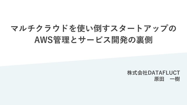 マルチクラウドを使い倒すスタートアップの AWS管理とサービス開発の裏側 株式会社DATAFLUCT 原⽥ ⼀樹