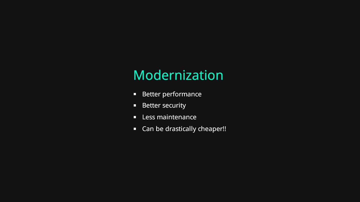 Modernization Better performance Better security Less maintenance Can be drastically