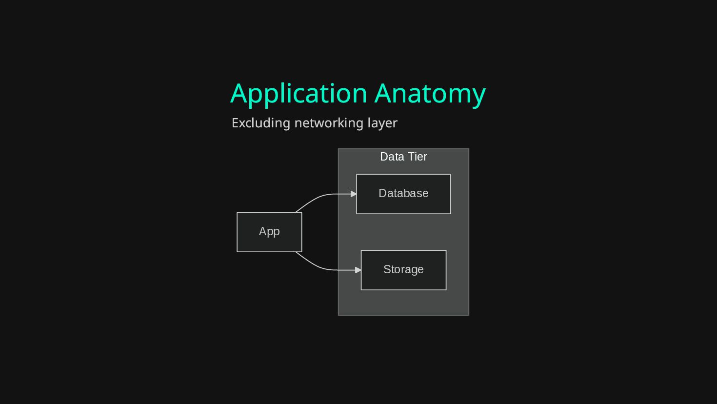 Application Anatomy Data Tier Database Storage App Excluding networking layer