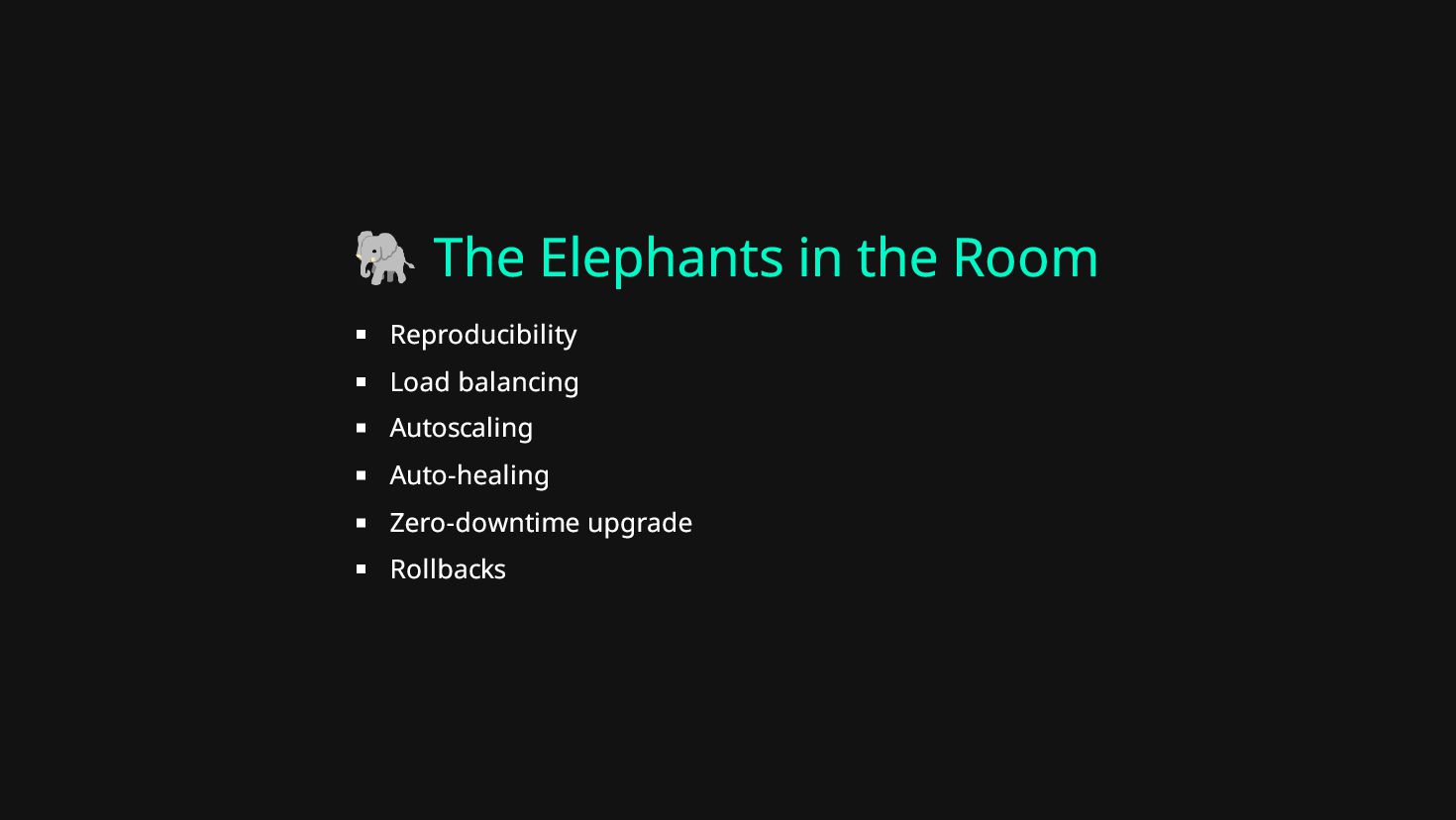 🐘 The Elephants in the Room Reproducibility Load balancing Autoscaling