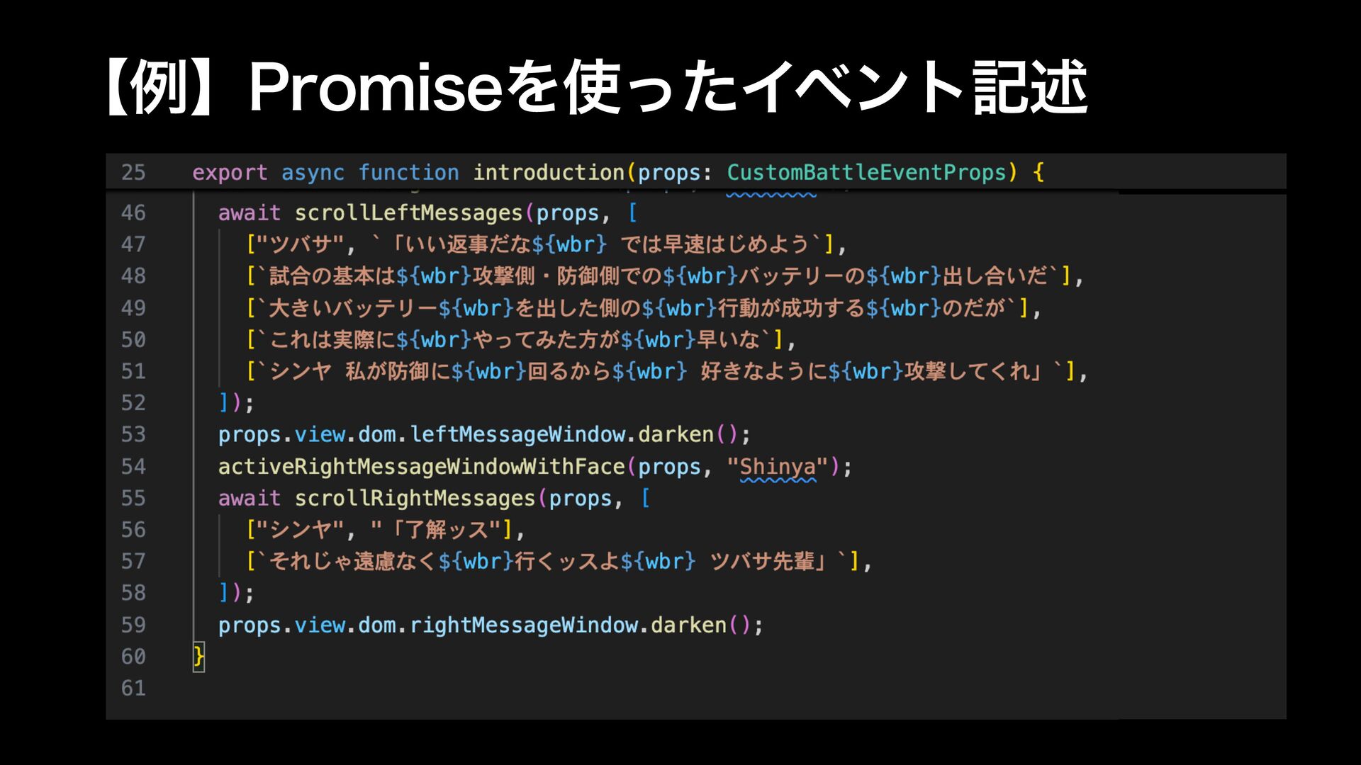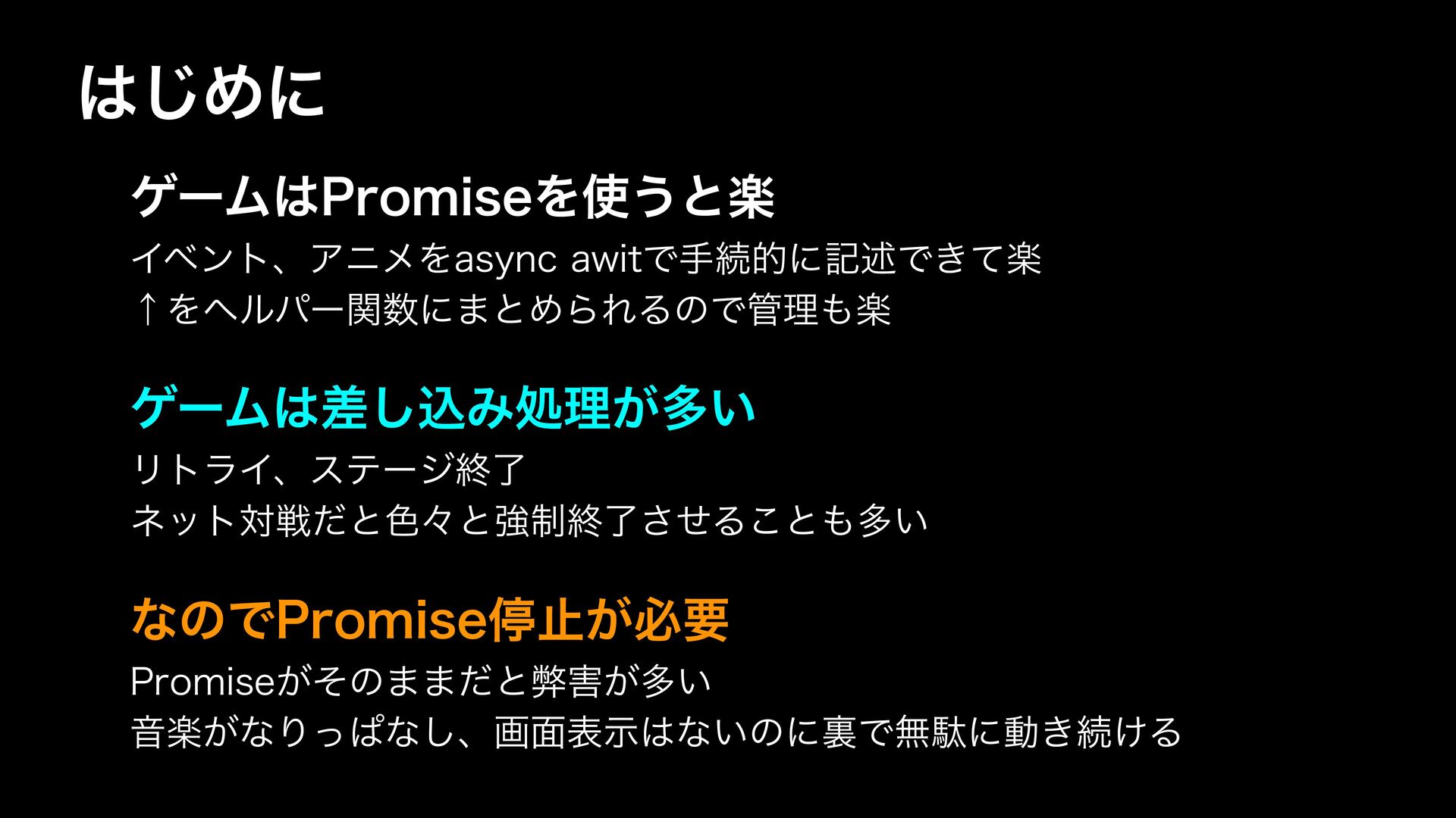 ήʔϜ1SPNJTFΛ͏ͱָ ΠϕϯτɺΞχϝΛBTZODBXJUͰखଓతʹهड़Ͱָ͖ͯ ˢΛϔϧύʔؔʹ·ͱΊΒΕΔͷͰཧָ ήʔϜࠩ͠ࠐΈॲཧ͕ଟ͍ ϦτϥΠɺεςʔδऴྃ ωοτରઓͩͱ৭ʑͱڧ੍ऴྃͤ͞Δ͜ͱଟ͍ ͳͷͰ1SPNJTFఀࢭ͕ඞཁ 1SPNJTF͕ͦͷ··ͩͱฐ͕ଟ͍ Իָ͕ͳΓͬͺͳ͠ɺը໘දࣔͳ͍ͷʹཪͰແବʹಈ͖ଓ͚Δ ͡Ίʹ
