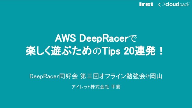 DeepRacer同好会 第三回オフライン勉強会@岡山 アイレット株式会社 甲斐 AWS DeepRacerで 楽しく遊ぶためのTips 20連発!