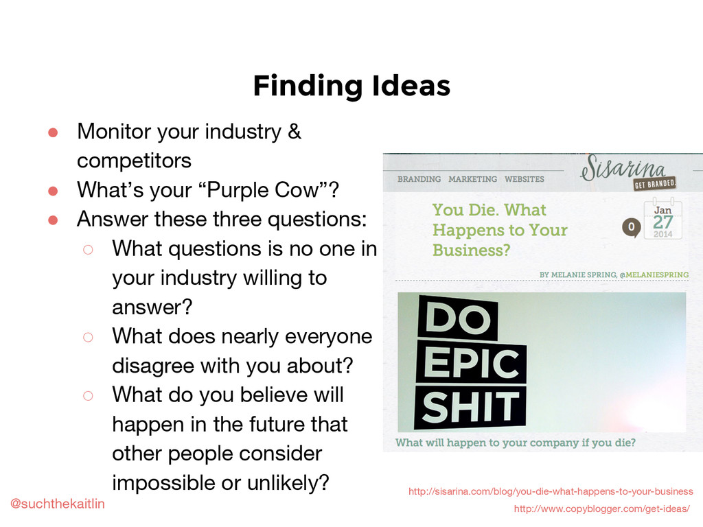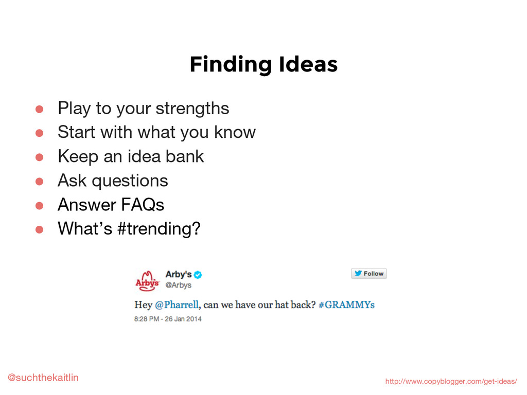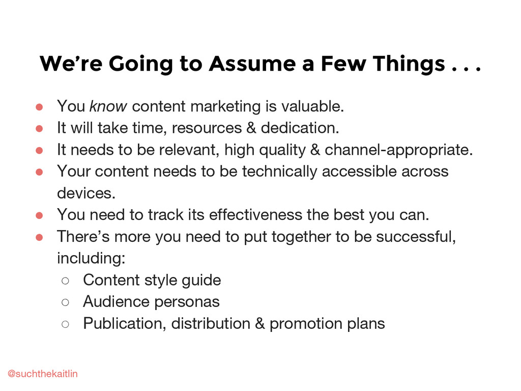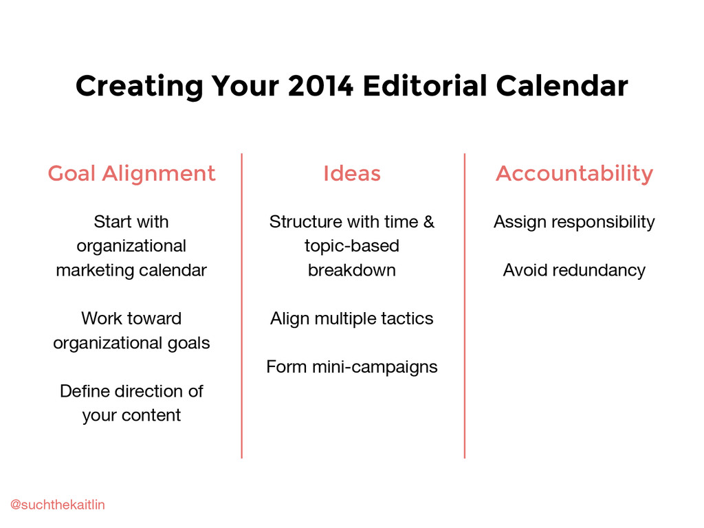 Includes a basic overview of content strategy, marketing, and planning; how to create an editorial calendar; how to brainstorm and repurpose content; and other planning tips and resources.