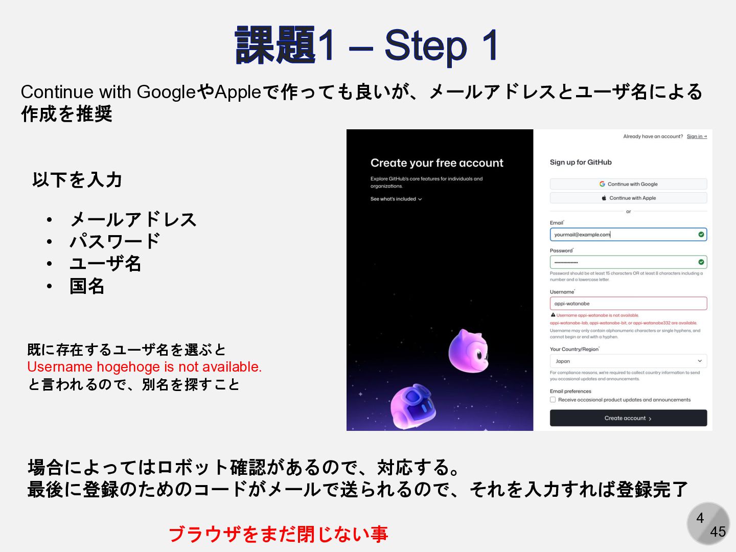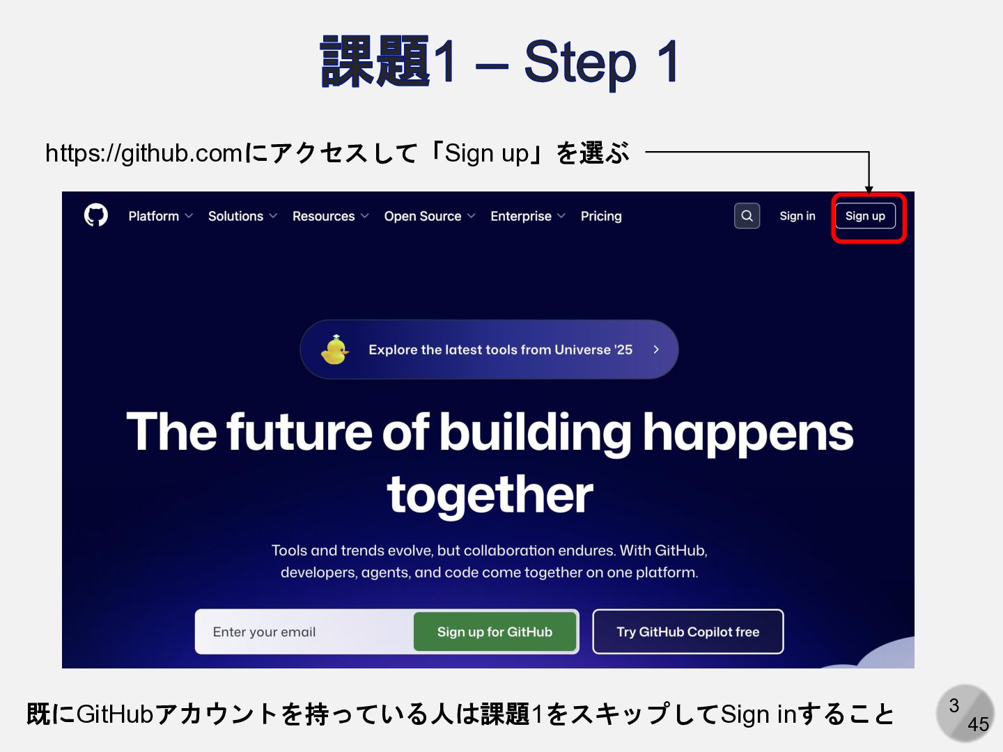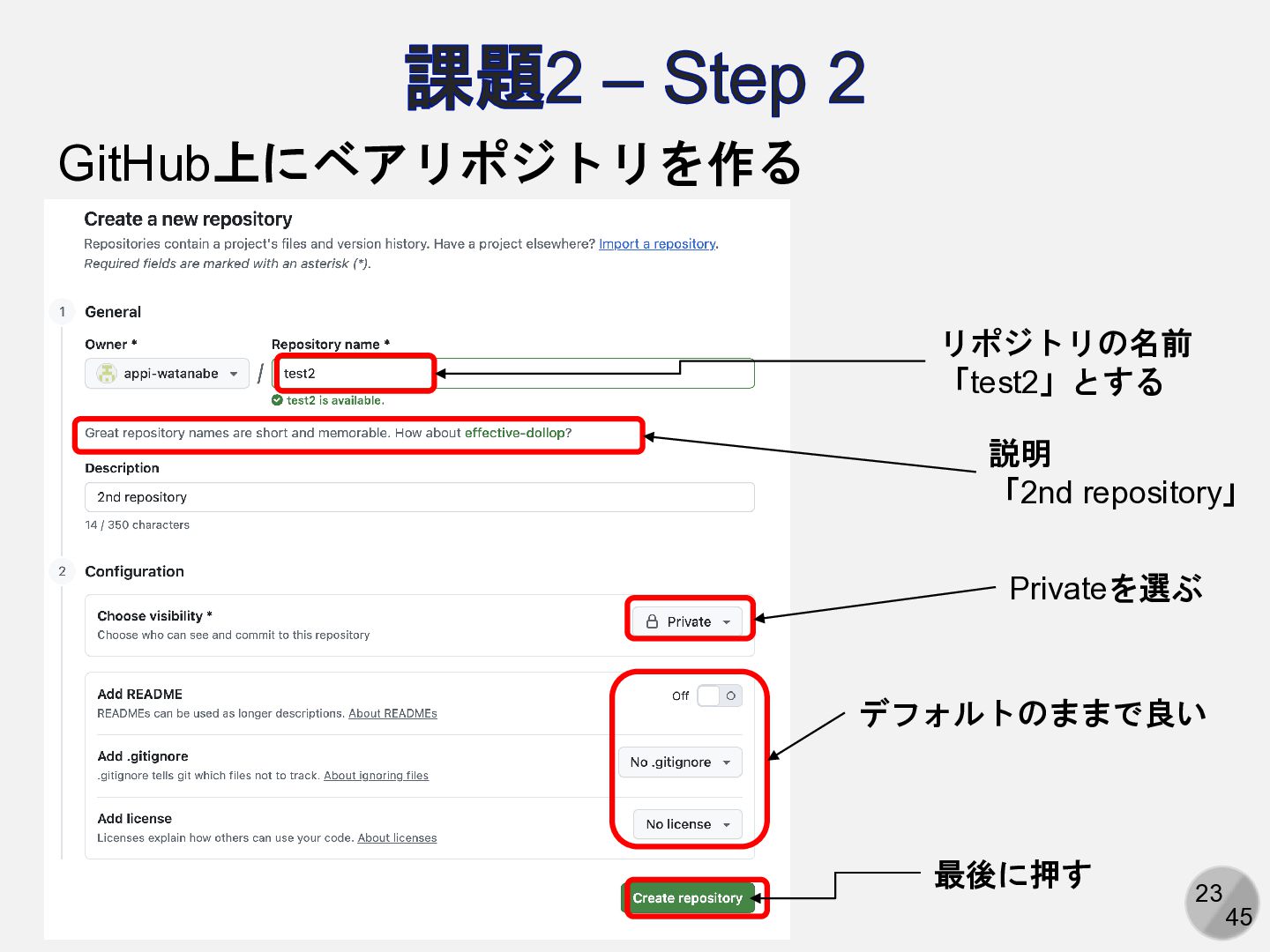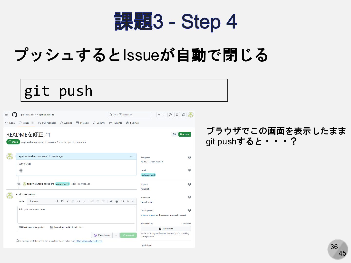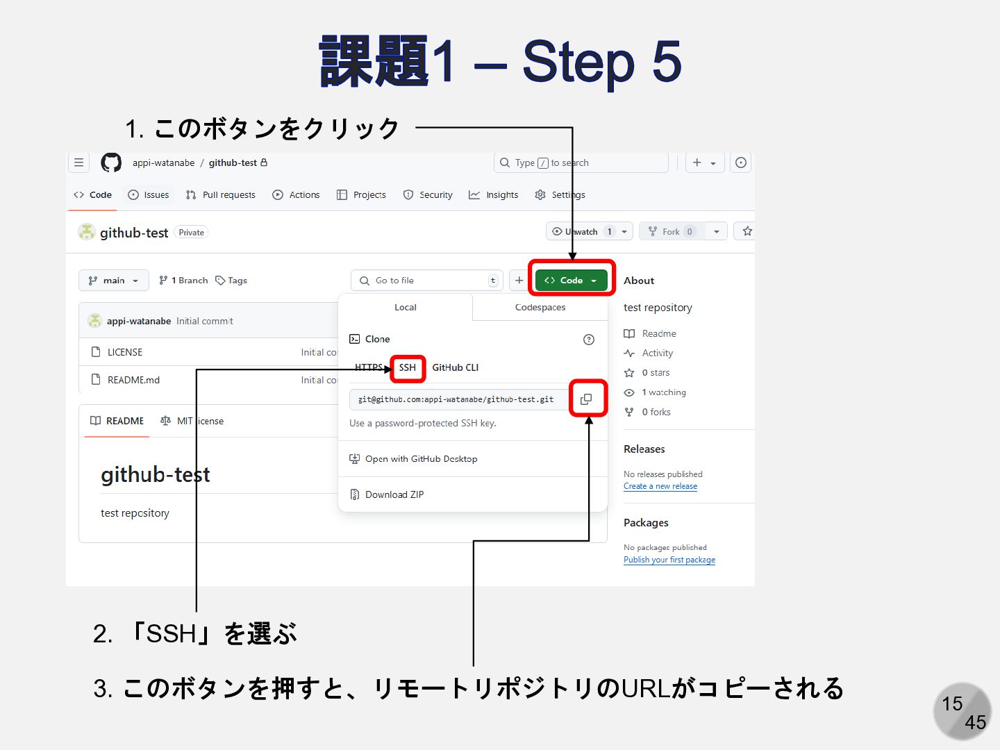Are you sure you want to continue connecting (yes/no/[fingerprint])? yesと入力 Enter passphrase for key ‘/path/to/.ssh/id_ed25519': パスフレーズを入力 ここは人によって異なる Hi (GitHubアカウント名)! You've successfully authenticated, but GitHub does not provide shell access. 以下の表示が出れば成功 アカウント名を含まないことに注意