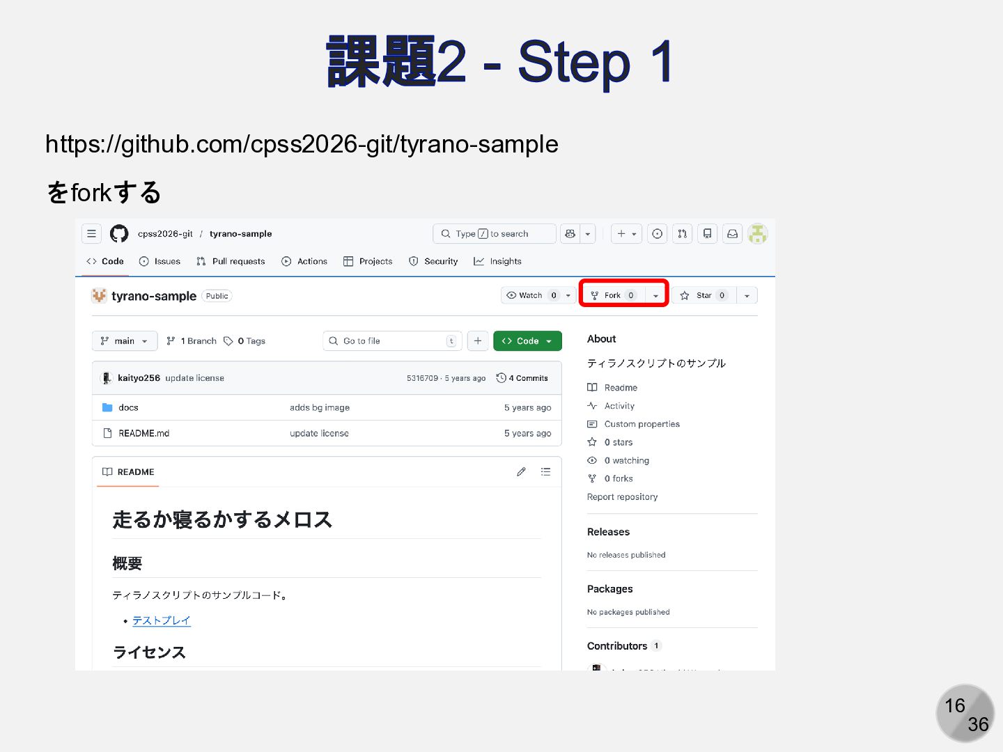 16 36 課題2 - Step 1 https://github.com/cpss2026-git/tyrano-sample をforkする