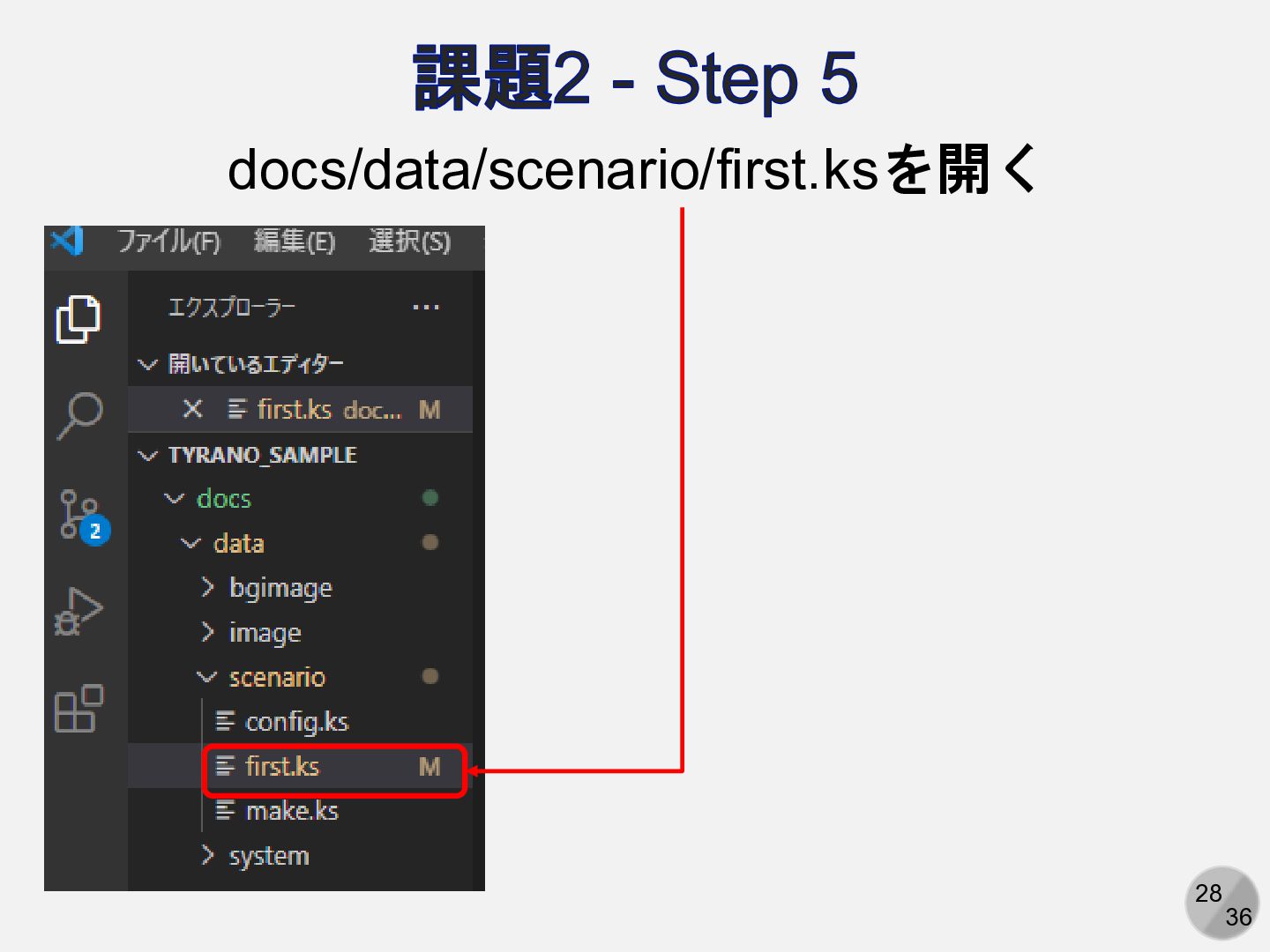 28 36 課題2 - Step 5 docs/data/scenario/first.ksを開く