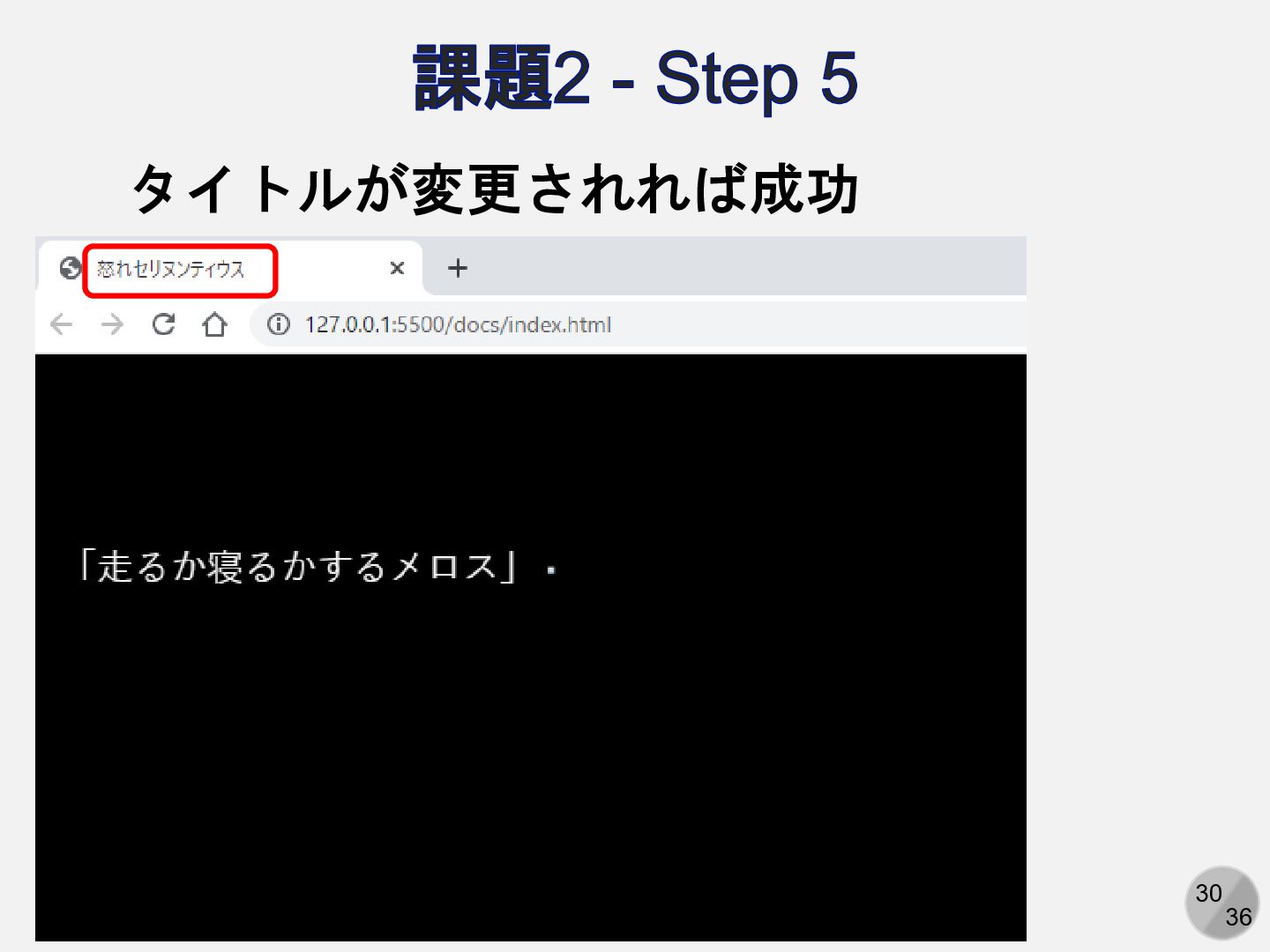 30 36 課題2 - Step 5 タイトルが変更されれば成功
