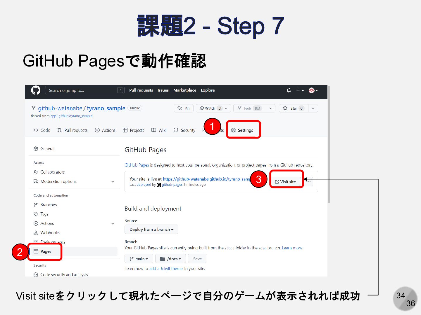 34 36 課題2 - Step 7 GitHub Pagesで動作確認 1 2